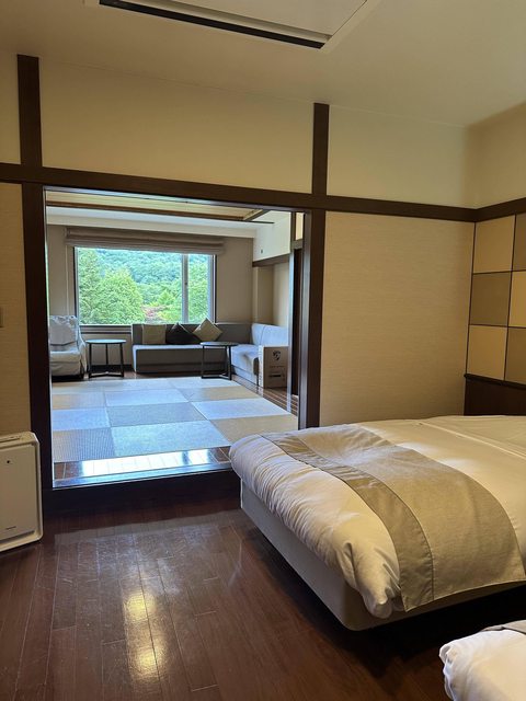 行程我都是訂兩間房,最後一晚溫泉旅館則是訂了一間和洋室,老爸睡他最愛的地板,