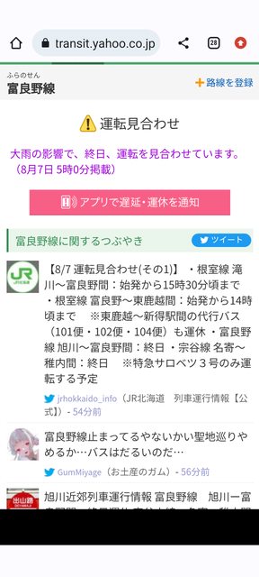 美瑛段也不行,上富良野官方fb才知昨天就因為豪雨停駛。