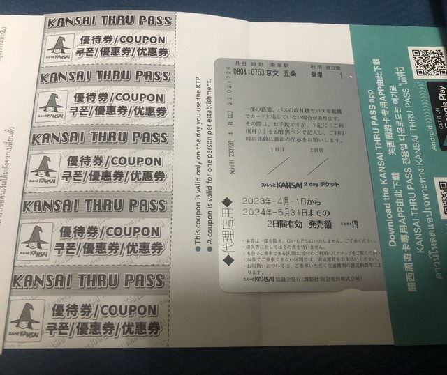 標題[讓售] 關西周遊卡KTP兩日券(已各用1日)2張