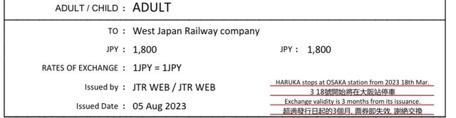 標題[讓售] HARUKA 關西空港-京都車站車票 (來回、可
