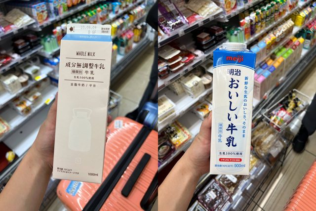 我們是到超商買鮮奶,再用住宿裡的微波爐加熱,左邊喝起來像瑞穗鮮乳的味道,右邊沒試喝過,兩款小孩都可接受