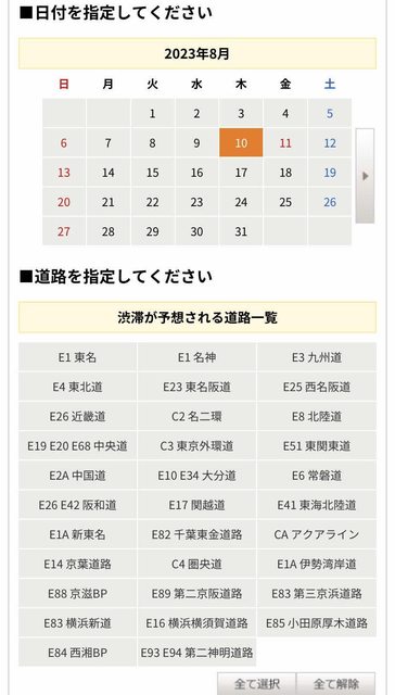 渋滞予測カレンダー