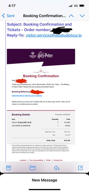 #票卷轉售 東京哈利波特影城 9/22 成人票*2