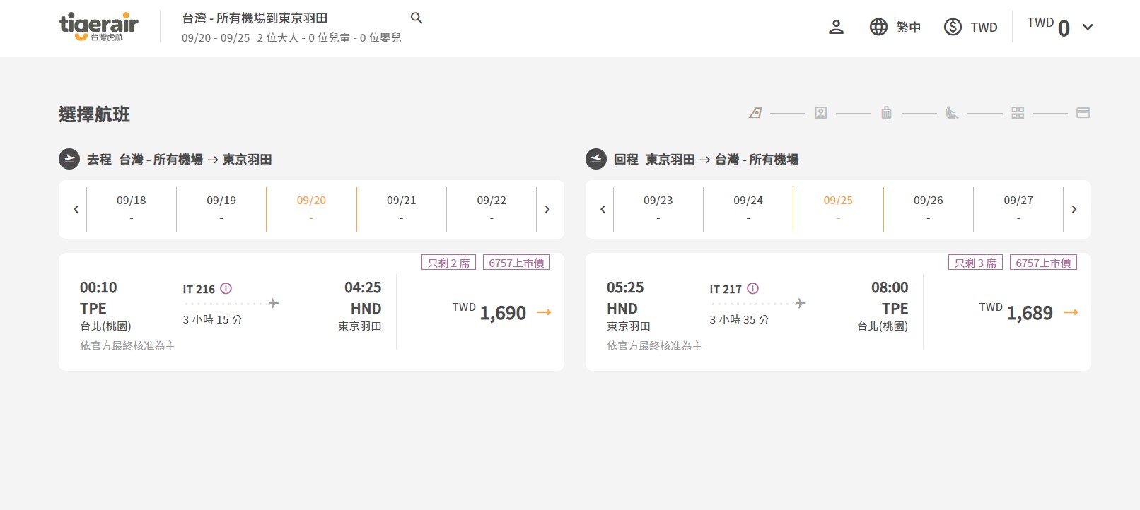 推 zonhuanlul : 9/30-10/4有羽田進,成田回都1689!! 08/15 09:25