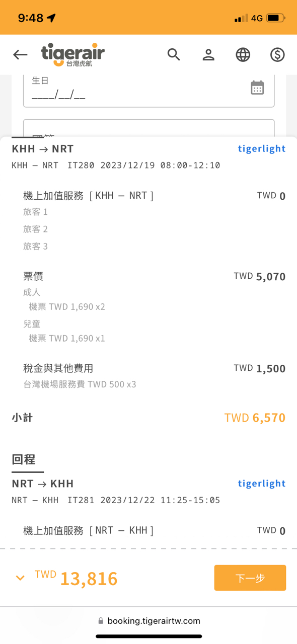 推 Aurora5566 : 東京一開始看來回都1689 但加了行李跟稅金 結帳變一 08/15 11:51