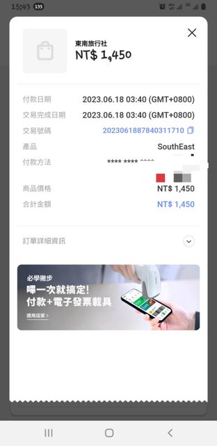 3. 此物品由您買入的價格(讓售只能小於或等於此金額):1450元 東南旅遊購入(Skylin
