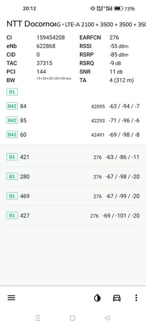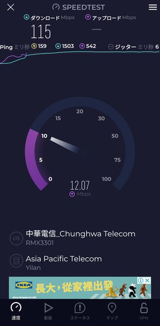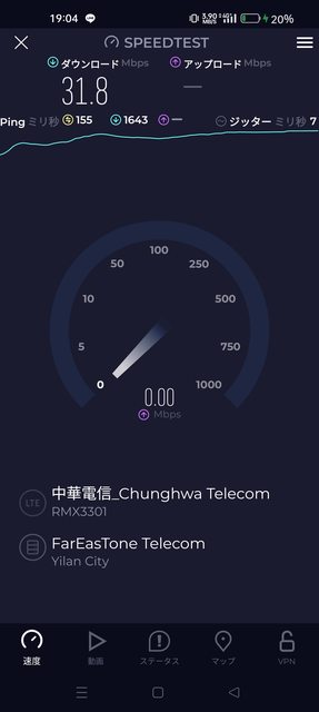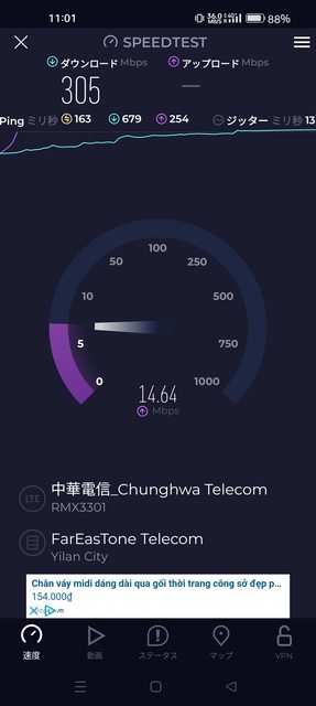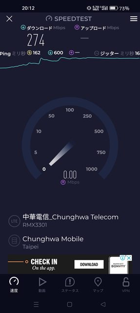 在沖繩來客夢更是測到將近300Mbps的高速(5CA)