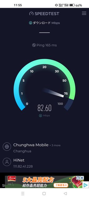 但是網速測出來還是有80Mbps以上(4CA)
