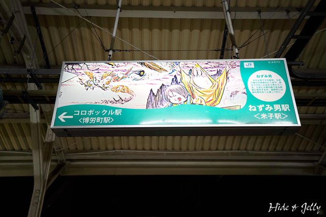 我們從米子出發,米子駅的境線月台是第0號月台,月台上的站牌是ねずみ男駅(鼠男站)