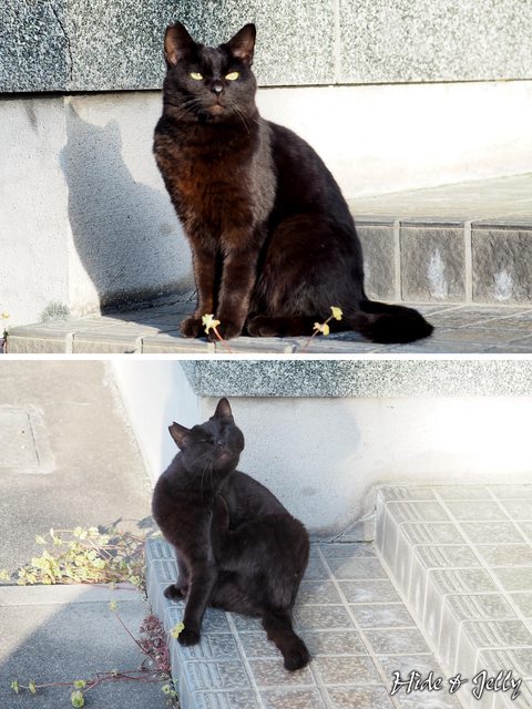 帥氣的大黑貓,眼睛炯炯有神,監視著這條街道上的一切(上圖),但偶爾還是會壞掉(下
