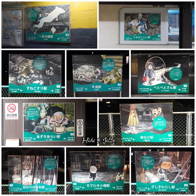 沿途的每個站都有根據鬼太郎故事中角色來做命名,不過因為我們沒有每一站都下車,在
