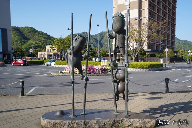 站的這個「河童の三平、タヌキ、カッパ像」(河童三平、狸貓、河童)算是比較大型的雕