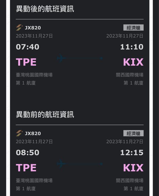 推 yopon : 11/4出發和11/12回程的也都被提早了 08/24 14:37