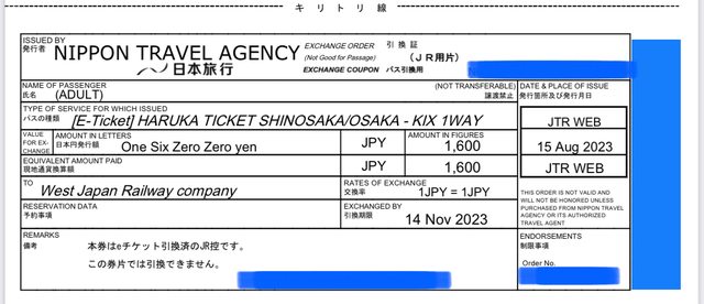 標題[讓售] JR HARUKA大阪至關西機場車票(單程