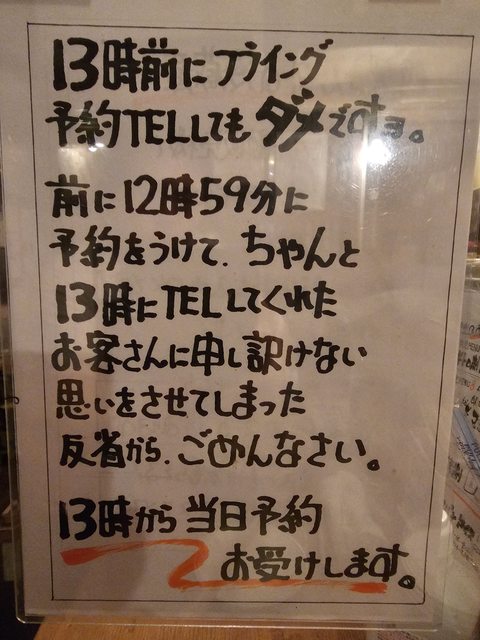當天13點開始接受電話當天份的預約,週日或週一休就看心情,