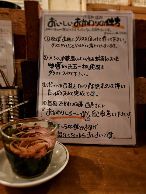 由店長將熬湯材泡開,然後兌燒酎後提供第一杯,