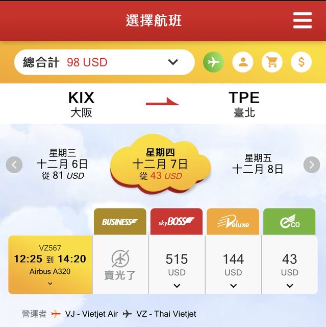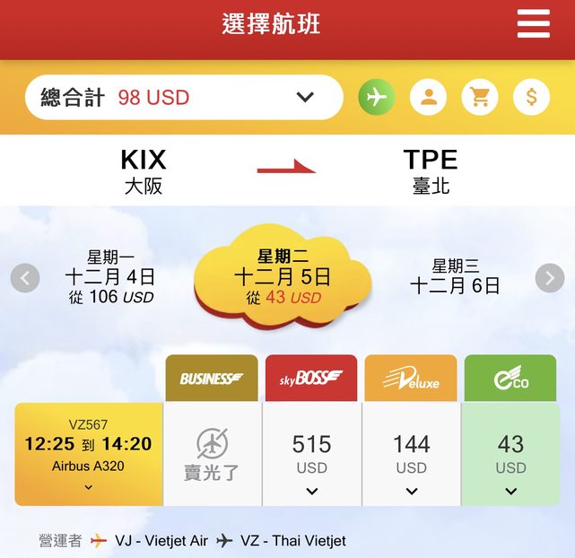 → bigguy : 自己買12/2週六去單程2.7K 蠻划算的 08/26 14:46