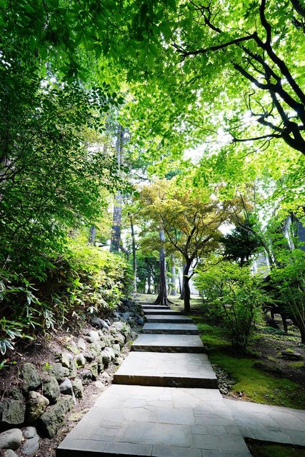 11. 藤田紀念庭園。這邊佔地頗大,可直接停車在此購買套票參觀(紀念庭園、弘前城、 弘前植物園) ,日式庭園造景慢慢逛慢慢拍照可以耗去不少時間,倘若在毒辣的太陽下, 可以到庭園裡的大正浪漫喫茶趣吃蘋果派