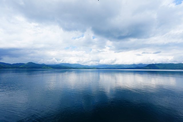 2. 田澤湖辰子像。算是舊地重遊,上次來的時候田澤湖水少,可以站到辰子像旁拍照, 這次因為梅雨影響銅像在水中,但景色依舊美麗