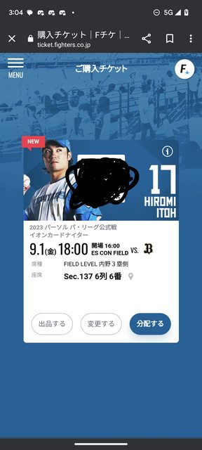 標題[贈送] 9/1 火腿對歐力士 一張球票 @ESCON