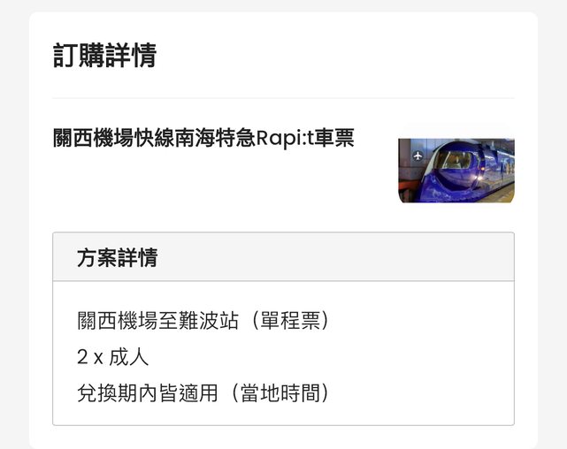 標題[讓售] 關西機場快線南海特急Rapi:t車票2張