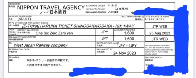 標題[讓售] JR HARUKA大阪至關西機場車票(單程)