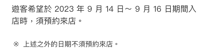 → S890127 : 但是這間9/14-16是完全預約制09/14 23:31