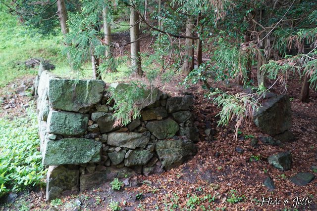 ,先看到右側的石垣,接著可以看到左側的石垣,兩者之間有通道,看起來是城門的石垣