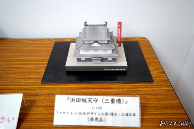 館內有浜田城天守(三重櫓)的模型,呈現正方形的浜田城天守屬於望樓式建築,並沒有華