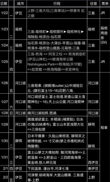 標題[問題] 冬日箱根伊豆河口湖行程請益