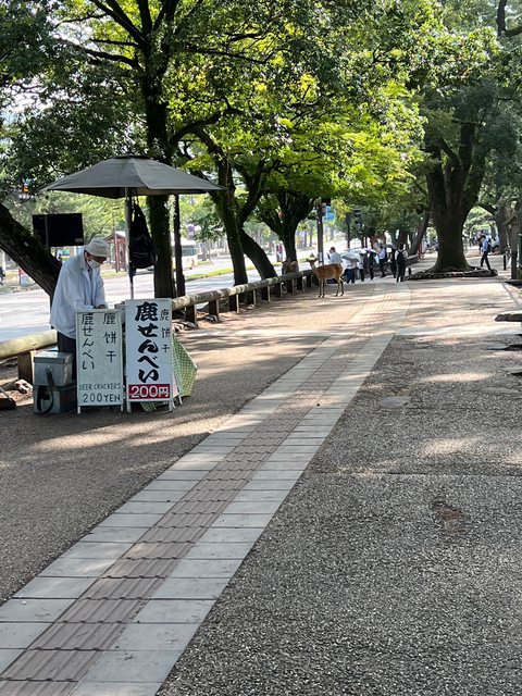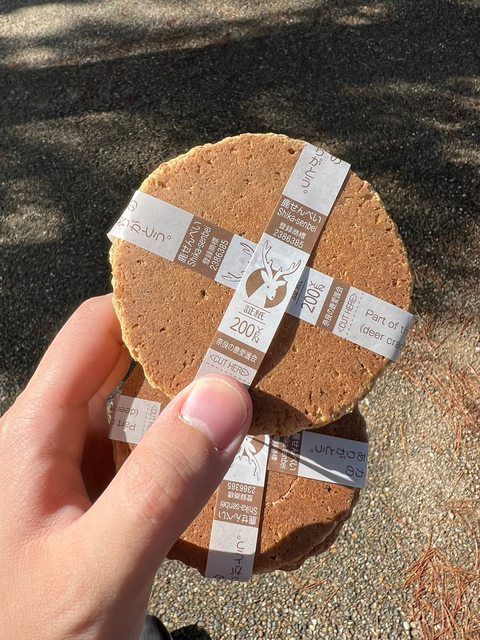 馬上就能看到路邊有人在賣一箱箱的鹿仙貝 (1份200日幣)