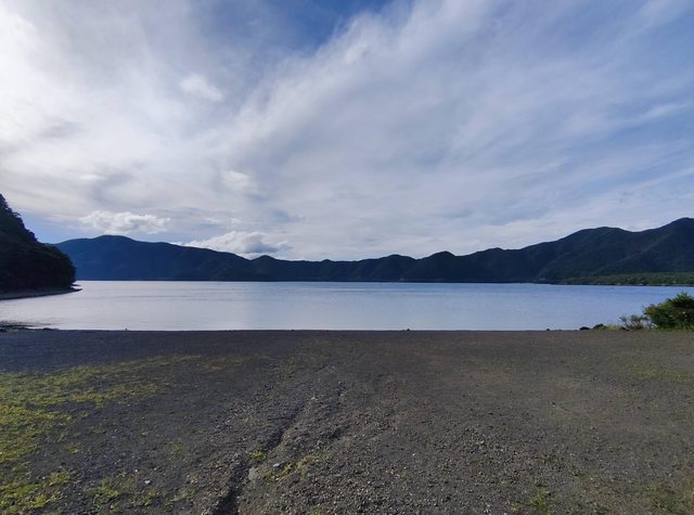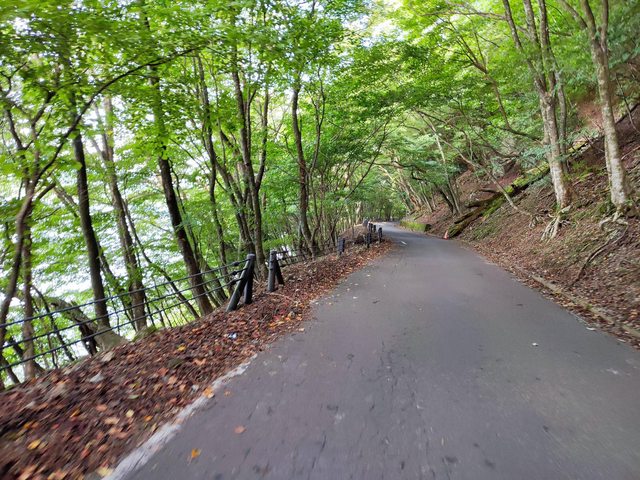 本栖湖南半邊大多是像這樣的綠色隧道
