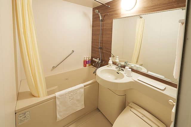 雖然浴室空間較為狹小,但乾淨整潔,逛街回來還可以用飯店提供的入浴劑泡澡放鬆。