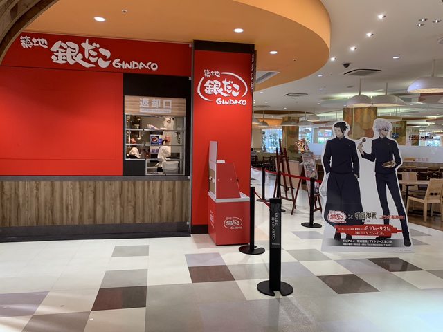 築地銀だこ有跟咒術collab,剛好Q's Mall店有看板,是也蠻想吃吃看但想到等一下還要