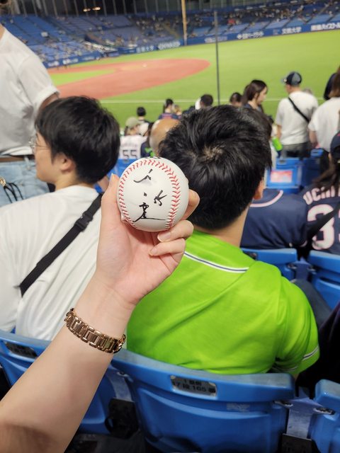 結束時跟幸運接到村上宗隆簽名球的粉絲借球來拍!!