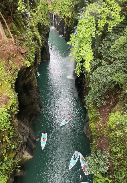 我們有先預約高千穗峽的划船活動,第一次划蠻好玩的,風景很棒。