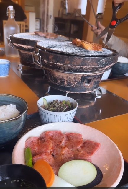 步行至高千穗峽。我們先在停車場旁的炭火焼肉ジパング吃午餐,這間大推,乾淨且幾乎