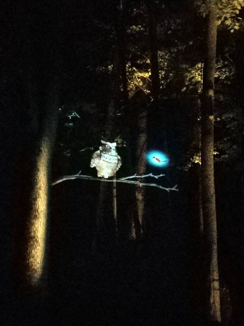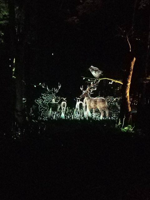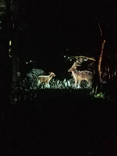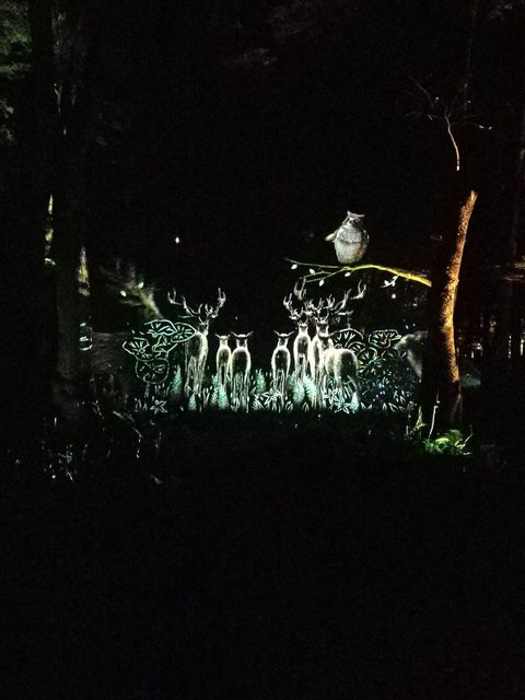 活動就是一邊靠權杖發出的光前進,一邊看樹林的燈光秀。