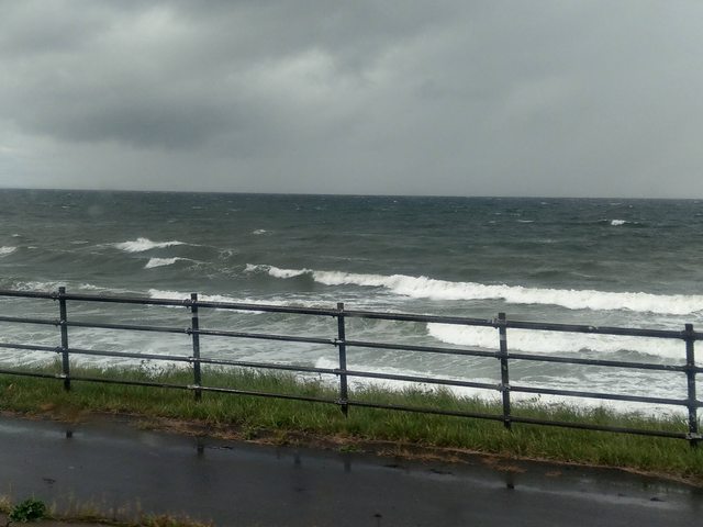 上車後沒多久外面開始下雨,海邊的風浪看起來也很大,瞬間可以理解今天賞鯨船取消的原