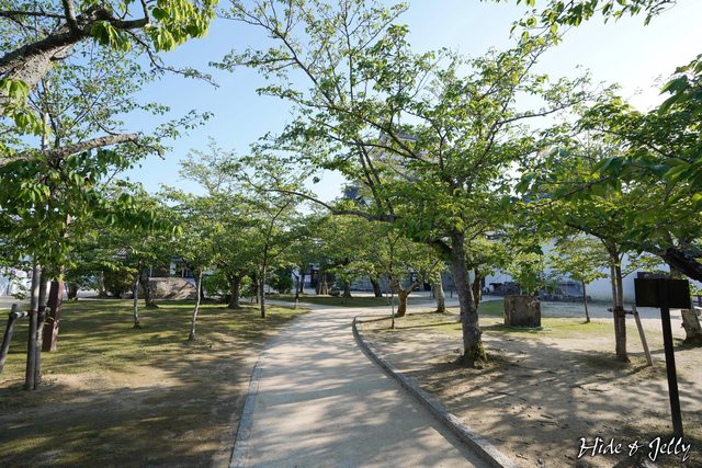 參觀完天守閣回到地面,本丸廣場裡看起來也都是剛長出新綠的櫻花,確實唐津城也是佐