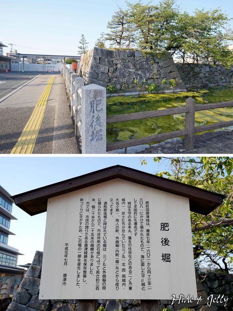 唐津神社南邊,就是唐津市役所的所在地,這裡也有唐津城的遺跡「肥後堀」,雖然堀內
