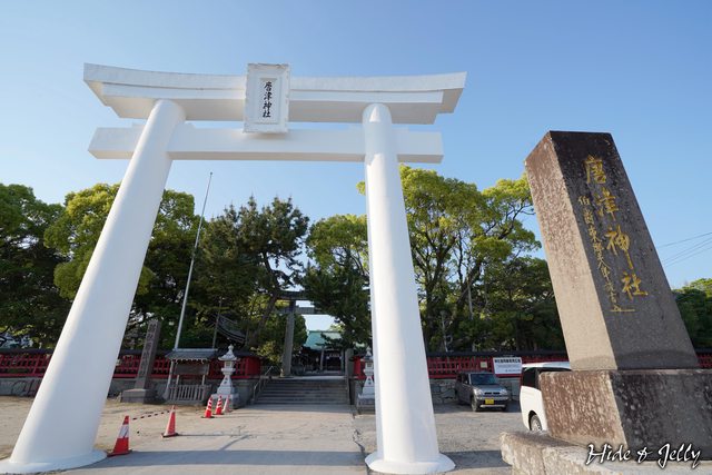 我們繼續往西走,從北側進入唐津神社,小小石鳥居正想說唐津神社不是唐津最大的神社