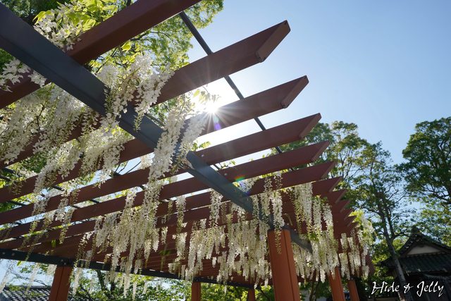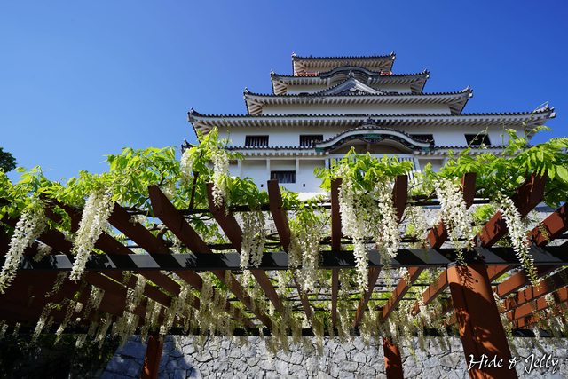 沒看到天守閣浮在紫藤上的奇觀,有天守閣藏身在白藤裡的畫面也是不錯啦。