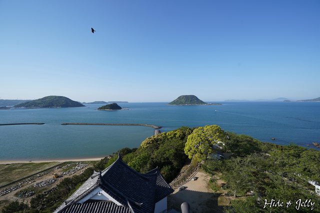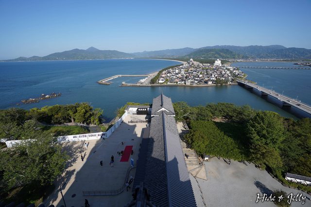 ,與東岸的特別名勝「虹の松原」構成展開羽翼的鶴,因此也稱為舞鶴城。本丸雖然有修