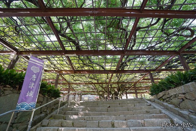 接近階梯終點,大大的棚架出現了,這就是我們六年前看到仍是一片光禿的「唐津城のフ