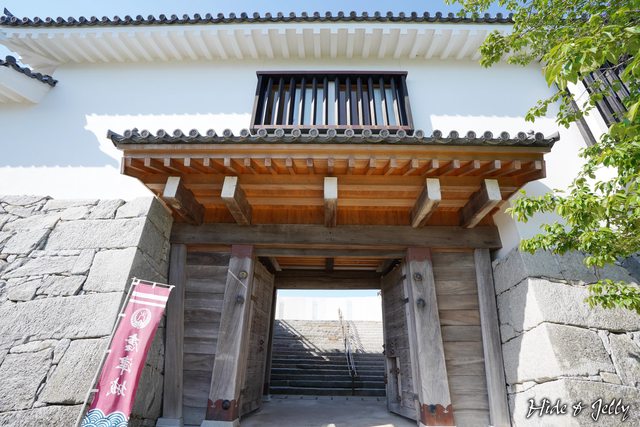 除了復原像是櫓門的櫓台石垣外,還真的在堀的一角復原了一棟櫓,但這沒有經過原貌考