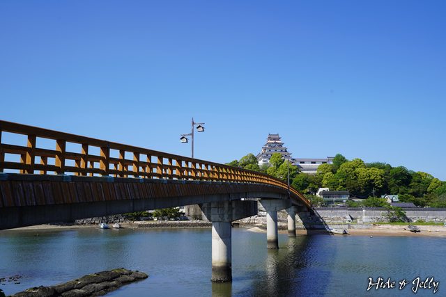 天守浮在橋上的樣貌,搭配萬里無雲的藍天,是不是很療癒?
