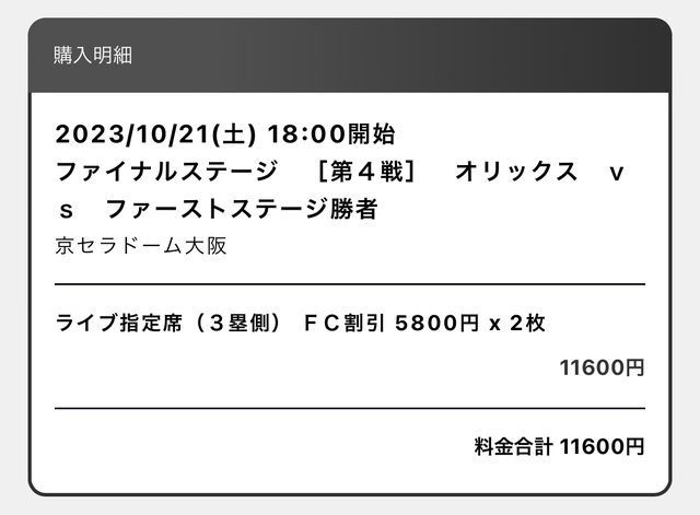 標題[讓售] 日本職棒洋聯季後賽決勝輪第四戰 歐力士v