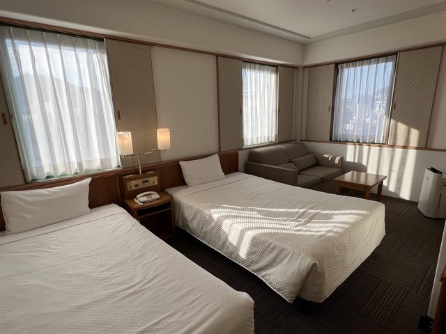 價格實惠且早餐好吃,雙床房大到裡面有沙發區,小孩可盡情在房間內玩耍。備品特別另提供DHC的洗面乳、化妝水與卸妝乳,超貼心!