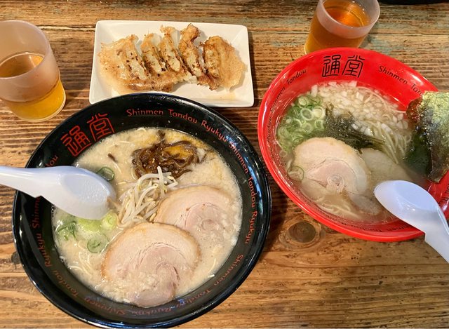 逛街完,坐計程車到沖繩有名的通堂拉麵,來就是要點他們有名的男人麵&女人麵,我們